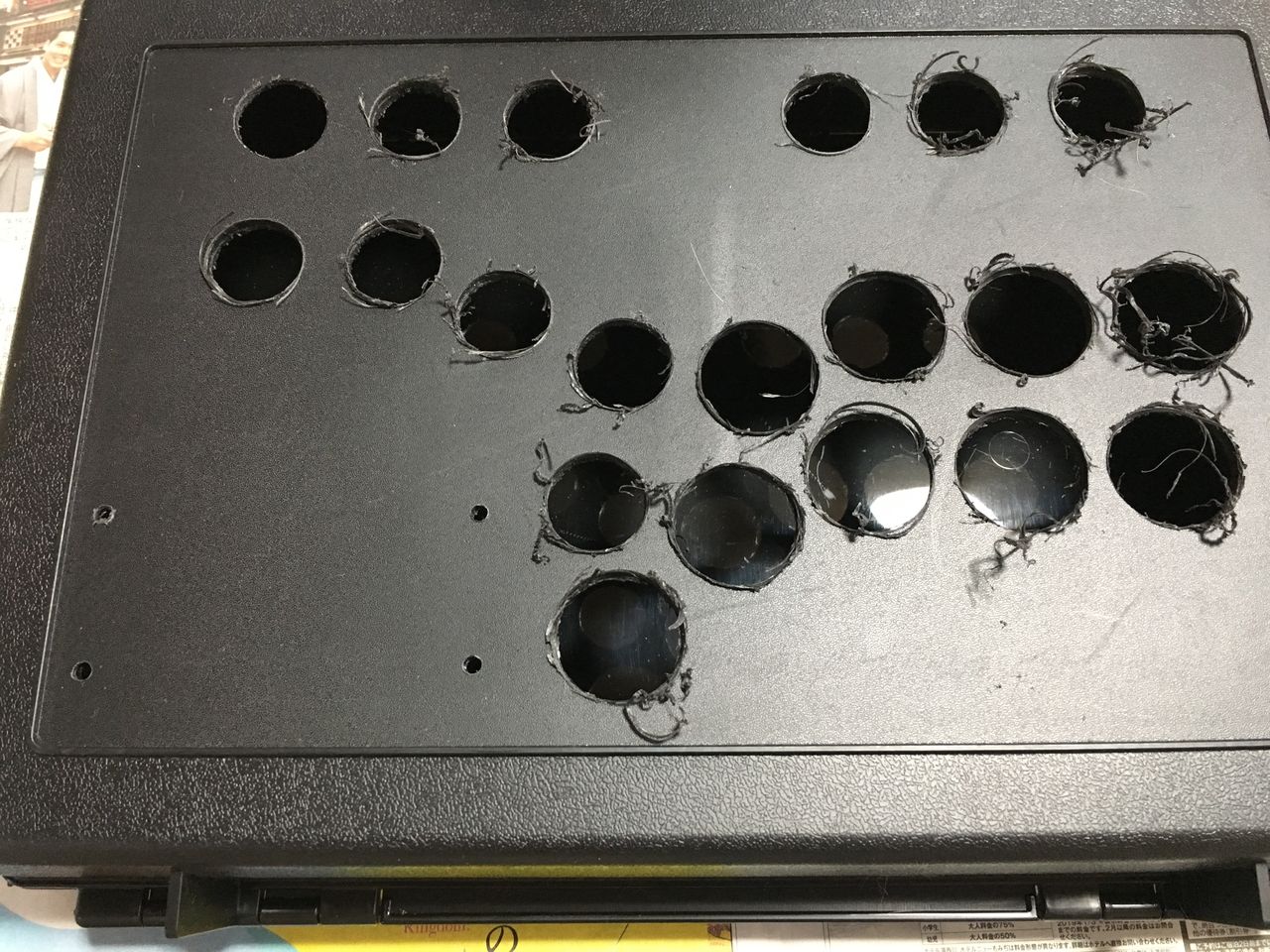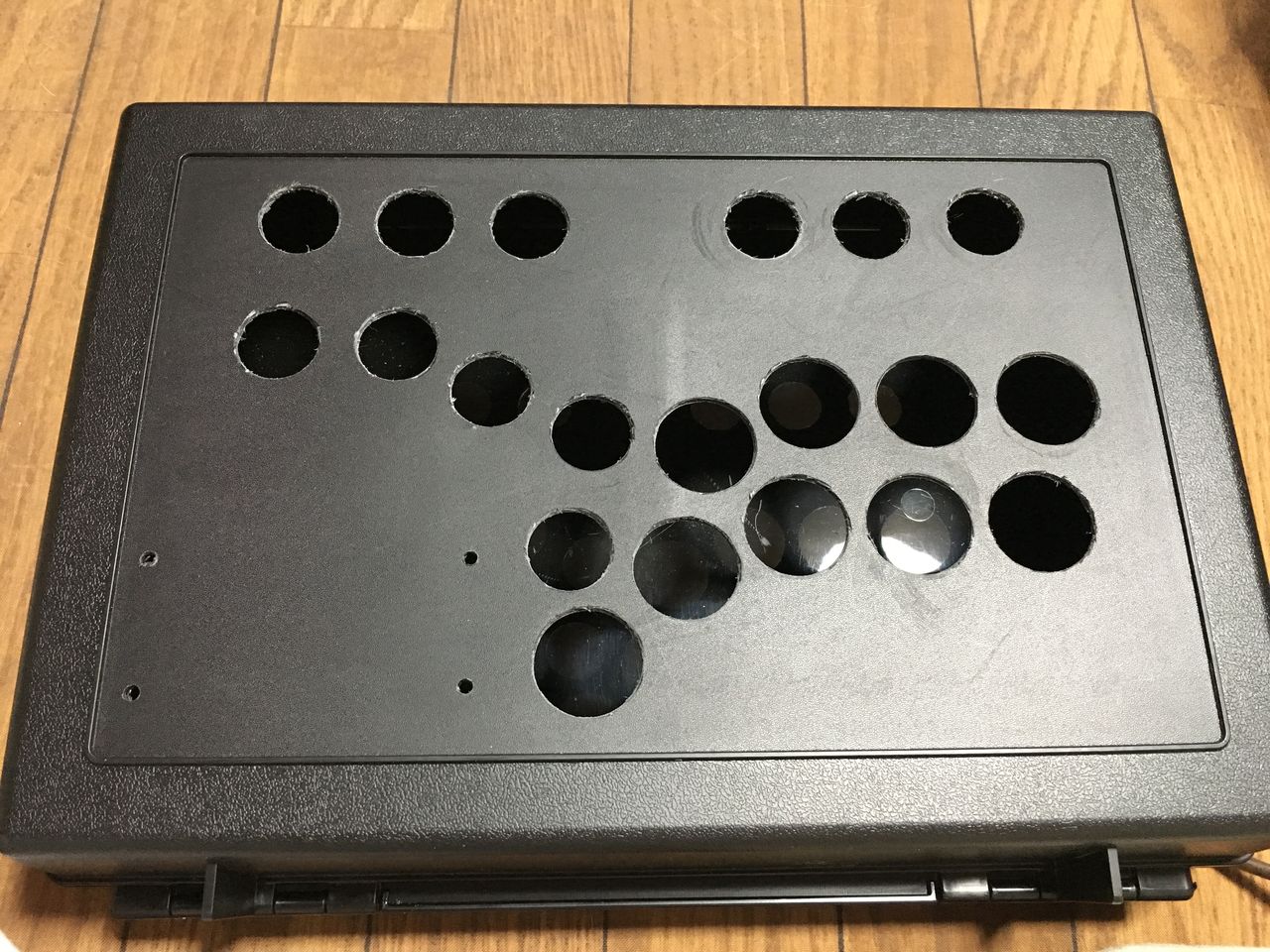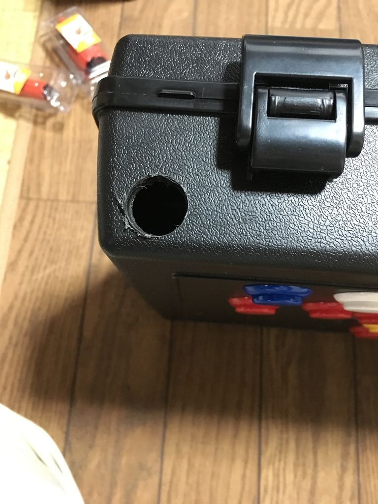 全部開けるとこんな感じ。プラスチックなので、さほど苦労はありません。基盤止め用のネジ穴もあけておきました。