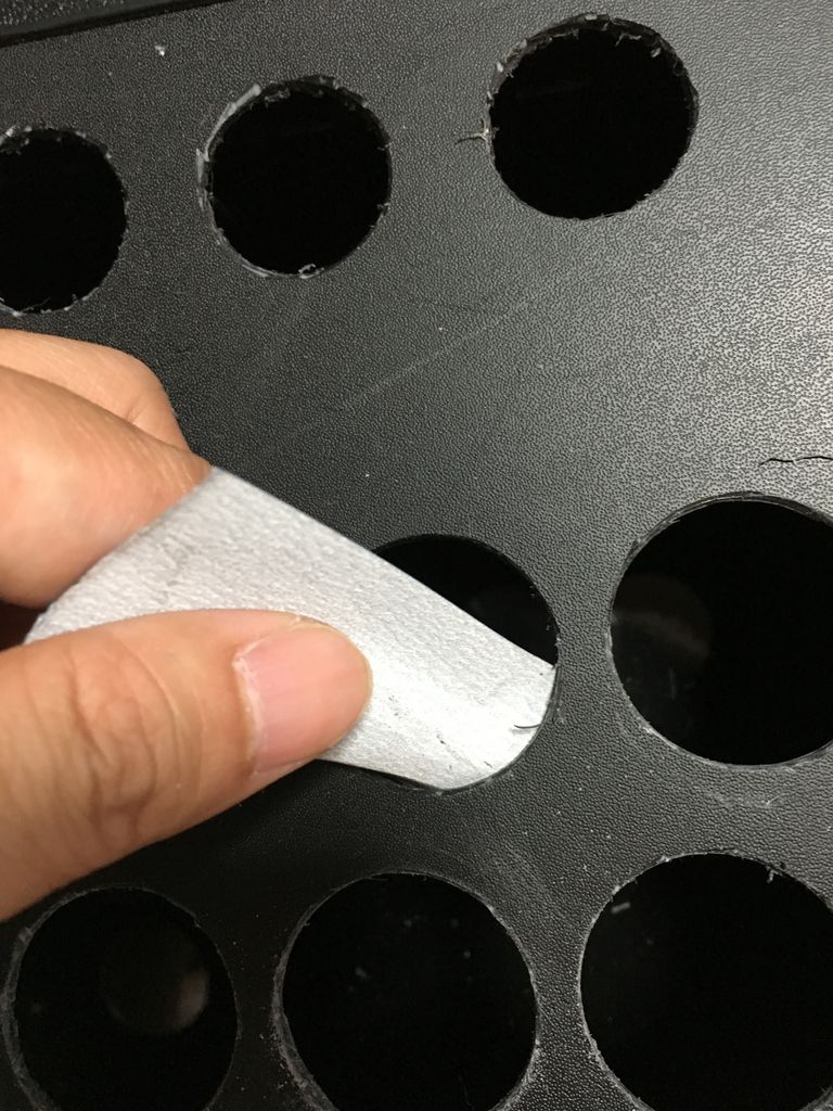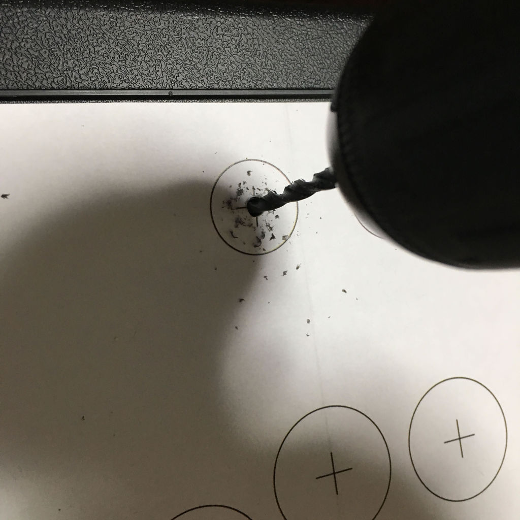 配置用の紙は必要なくなったので外し、次はホールソーで穴を開けます。
