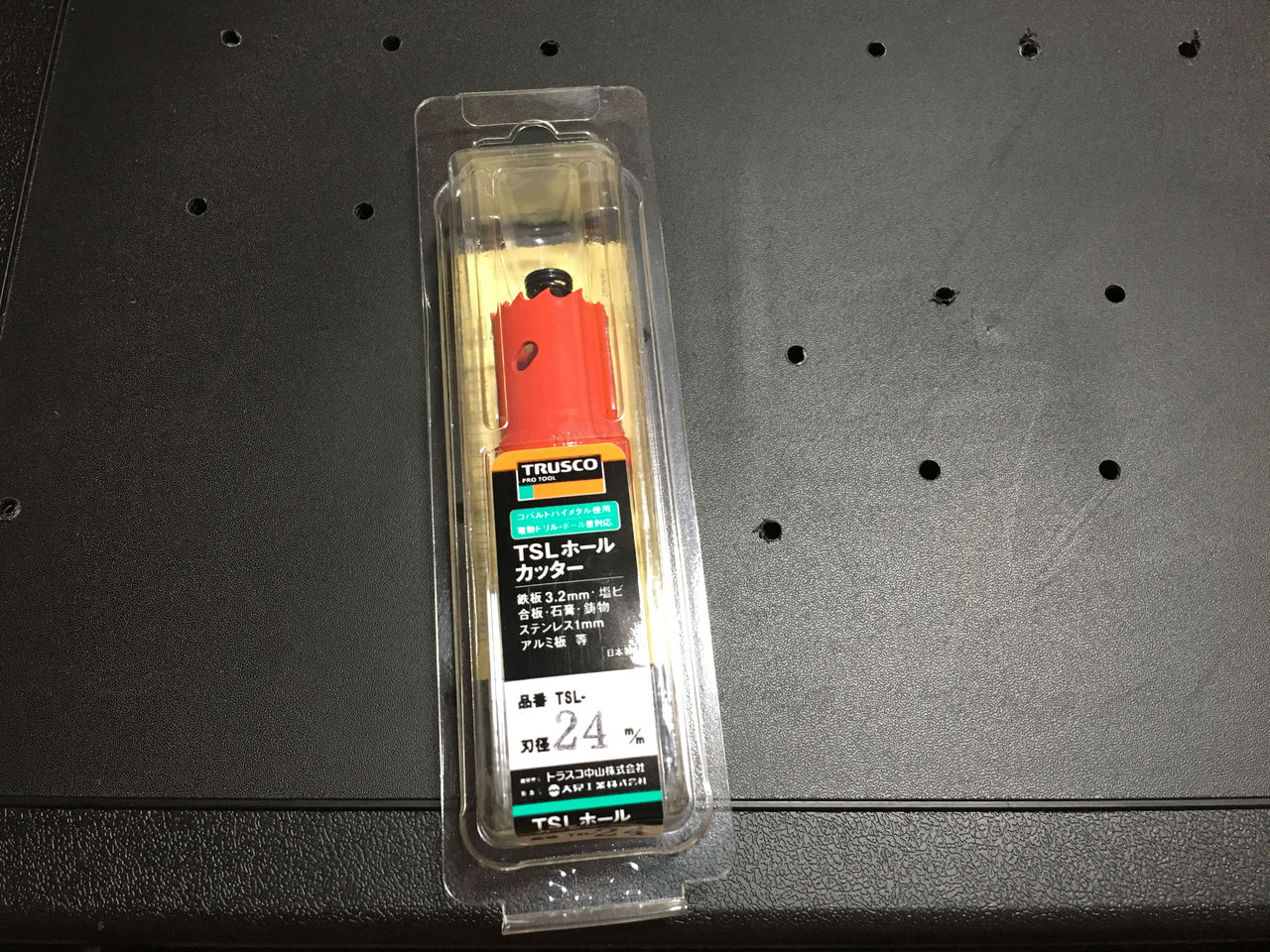 小さいボタンは24mm 通常のボタンは30mmの穴になりますので、それぞれのホールソーを用意しました。