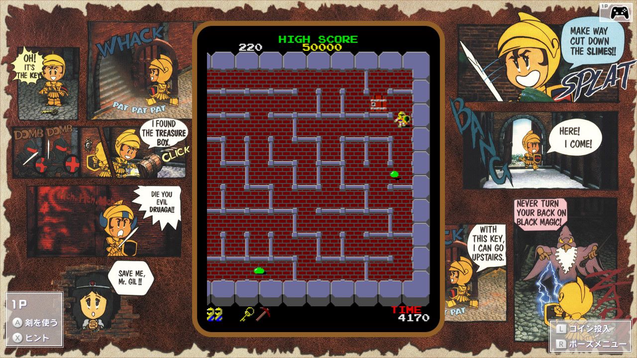ドルアーガの塔もアーケード版。ヒントが表示できる新設設計なのでサクサク遊べます。