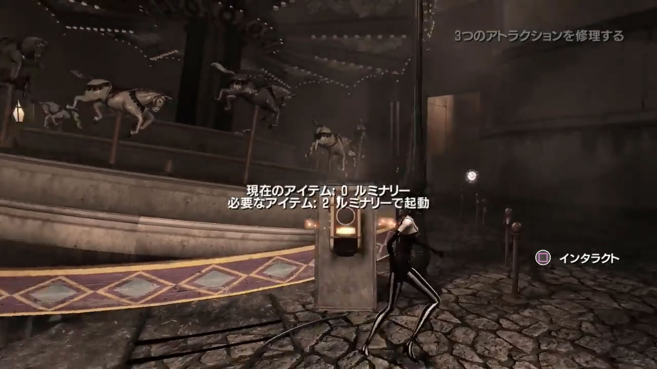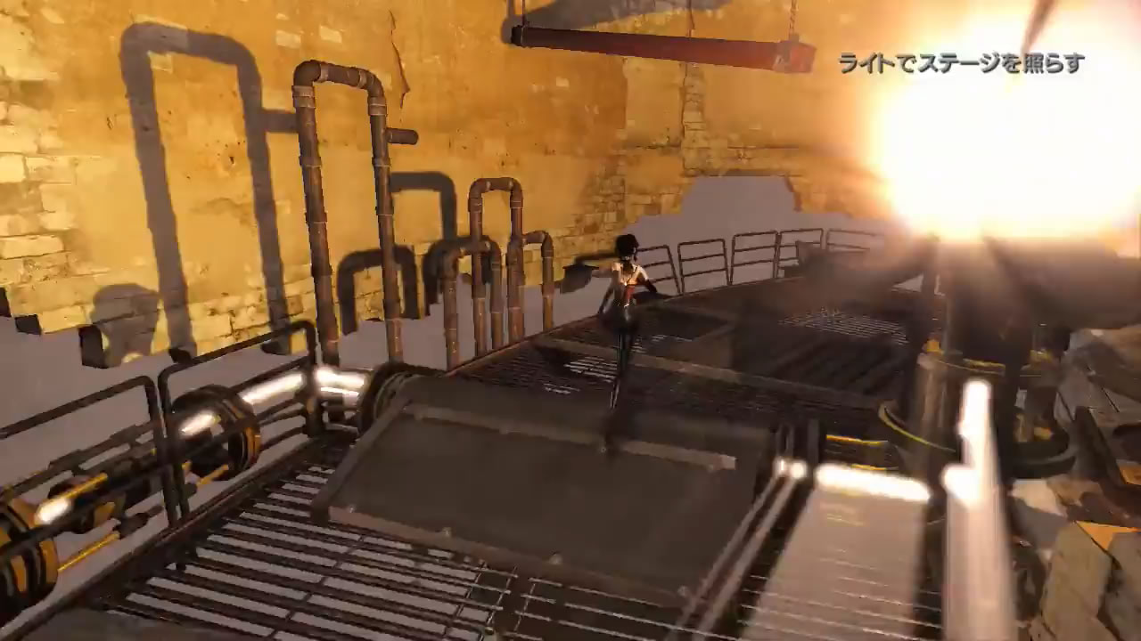 先に進むと変な装置があり、それを起動すると光が格子状に入ってきます。