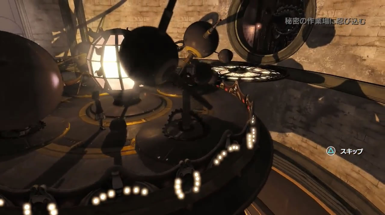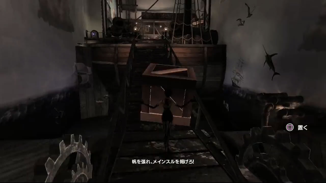 壁に映った歯車を使って上に行きます。