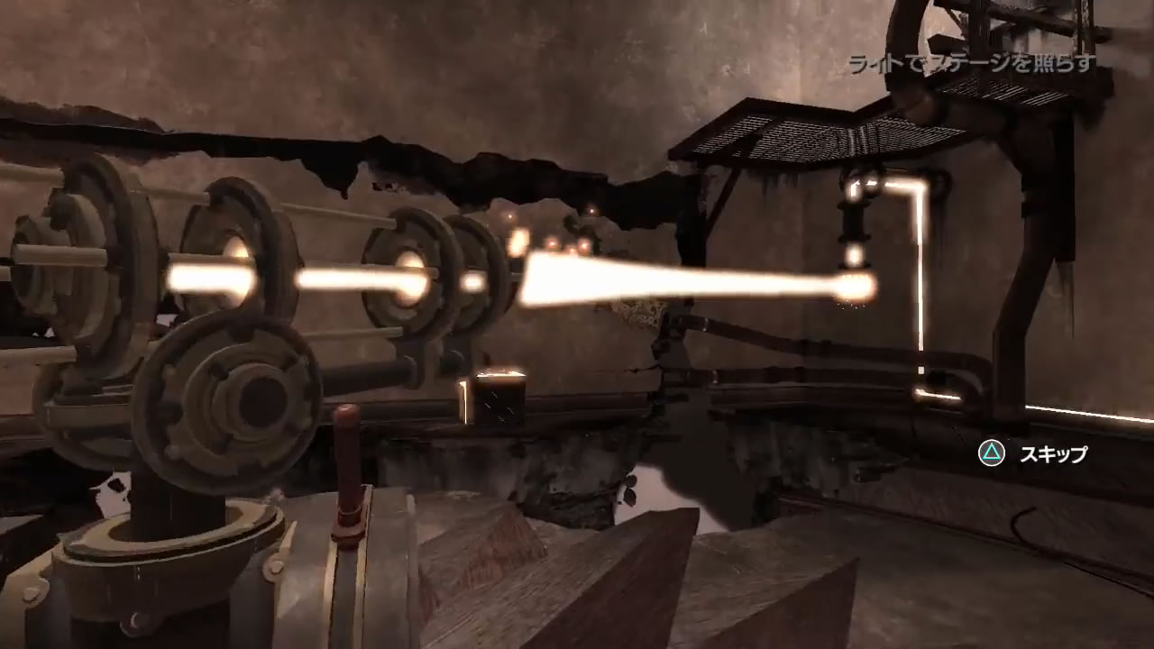 先ほど動かした光によって、上の階の装置が動き出しました。