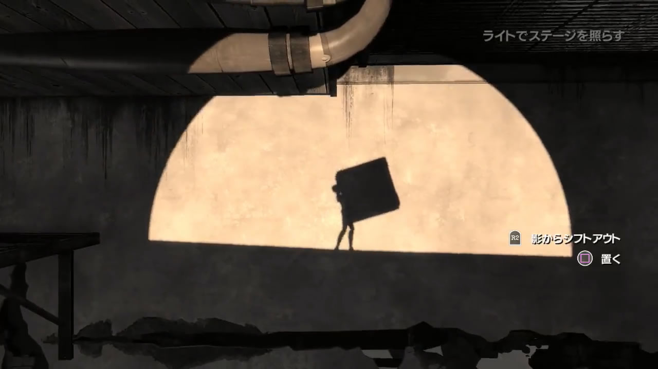 途中にある箱を持って移動するライトを進みます。